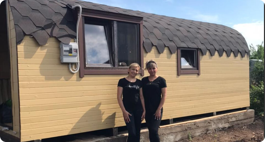 В наличии баня Танк 5*2.5м из ели, цвет - палисандр, кровля - коричневая (ЮН-86):